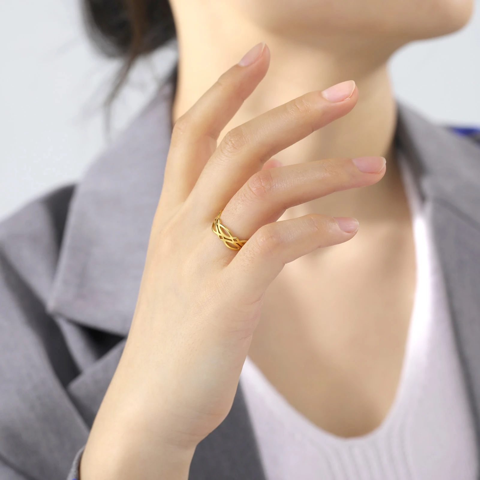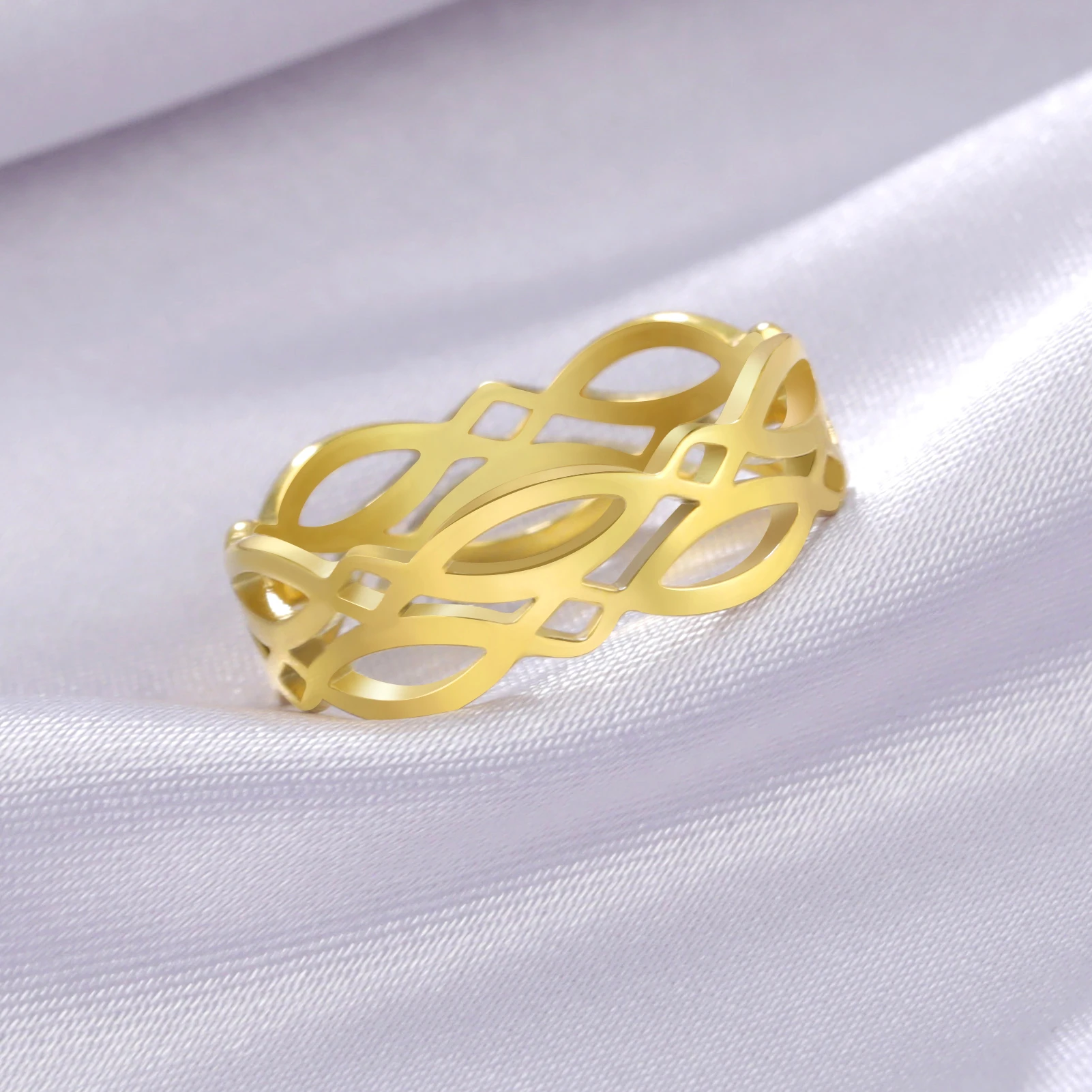 Aesthetic: Substantial, intricate, and contemporary. The openwork structure gives the wide band a light, airy feel, while the polished finish adds elegance. The detailed design appeals to those who appreciate elaborate yet modern jewelry.
