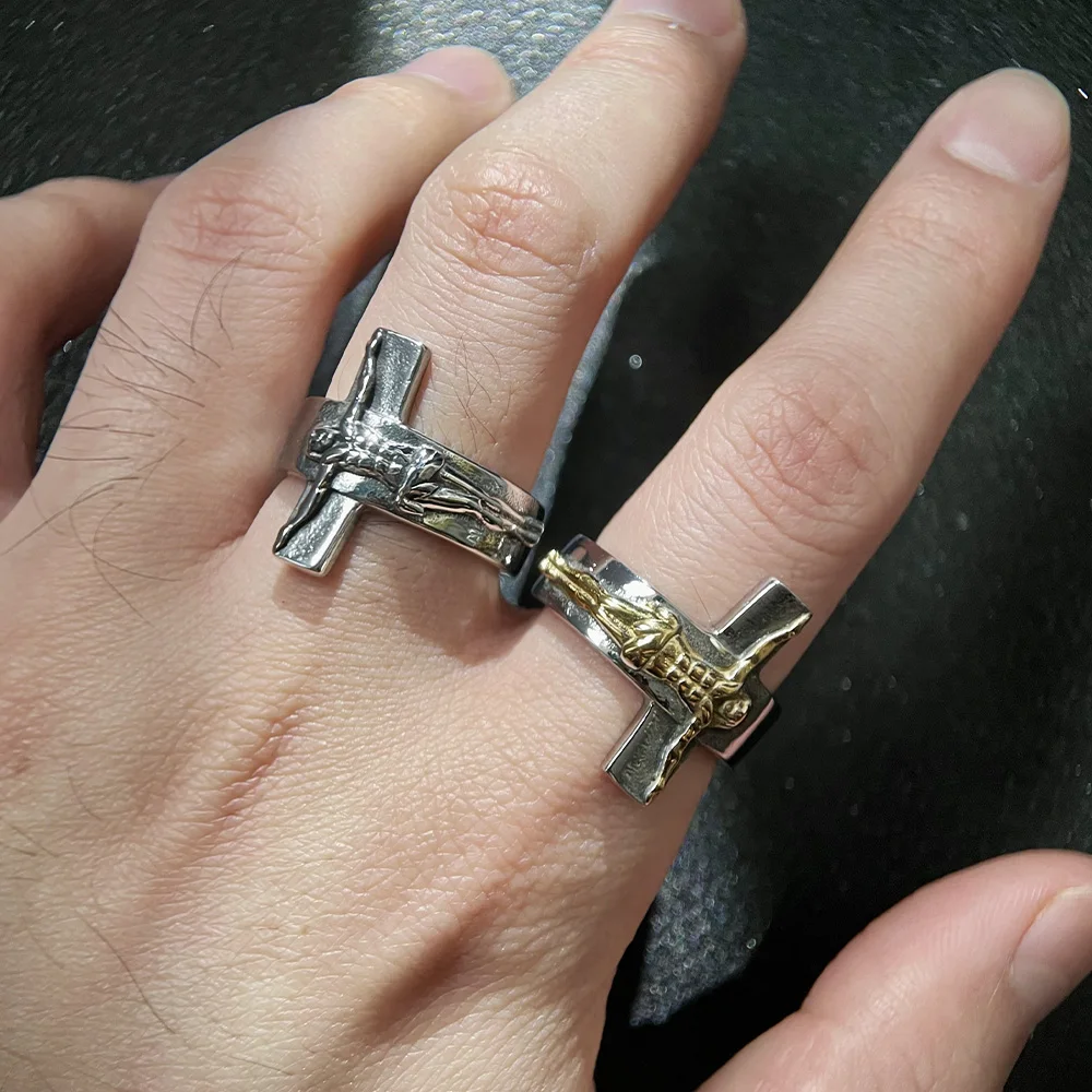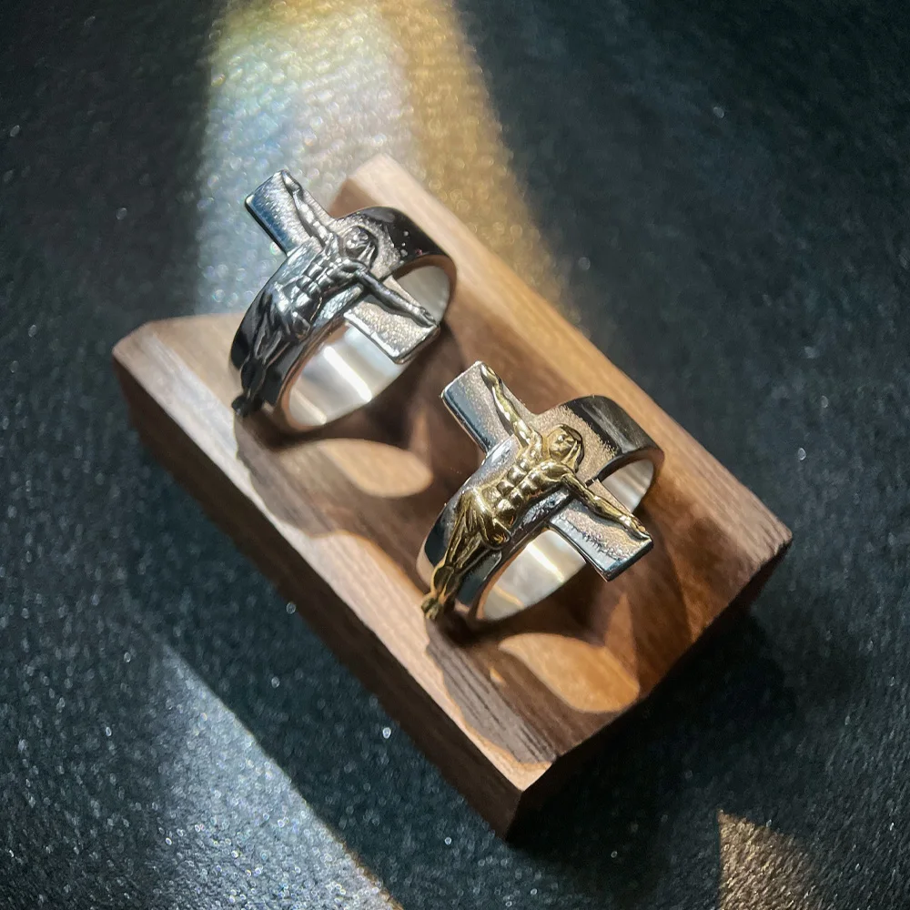 Why Choose This Product: This ring is an exceptional piece of devotional jewelry. The two-tone, high-relief design dramatically emphasizes the sacrifice of the Corpus, making it a profound and unmistakable declaration of Christian faith and reverence.