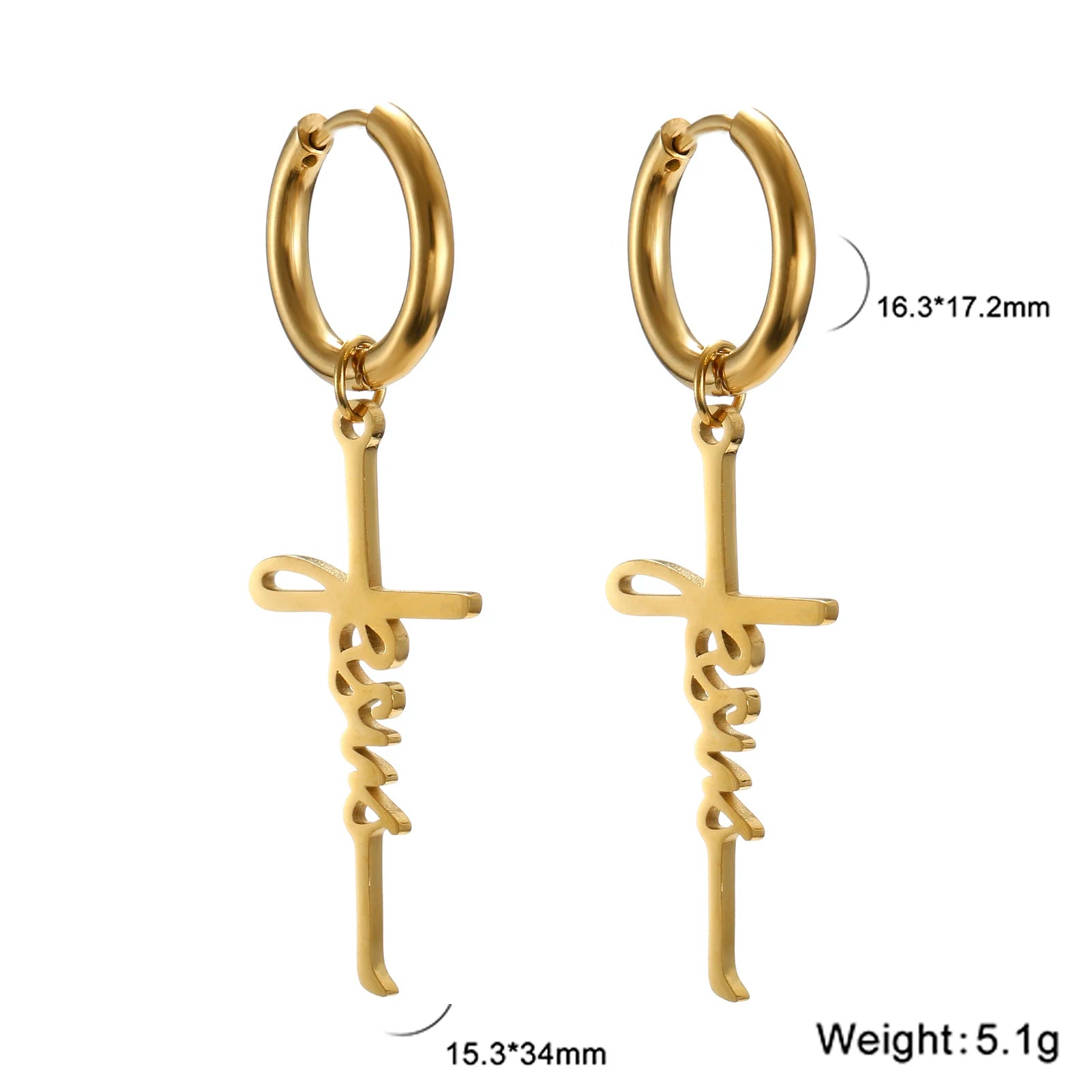 Script "Jesus" and Cross Dangle Hoop Earrings