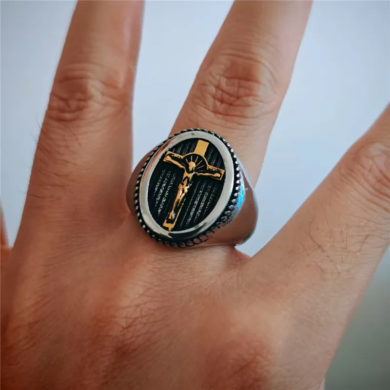 Carry the power of faith wherever you go with the Jesus Cross Ring for Man, a bold symbol of belief, courage, and devotion. Designed for the modern Christian man, this ring blends timeless style with spiritual meaning — a constant reminder that strength comes from Christ.