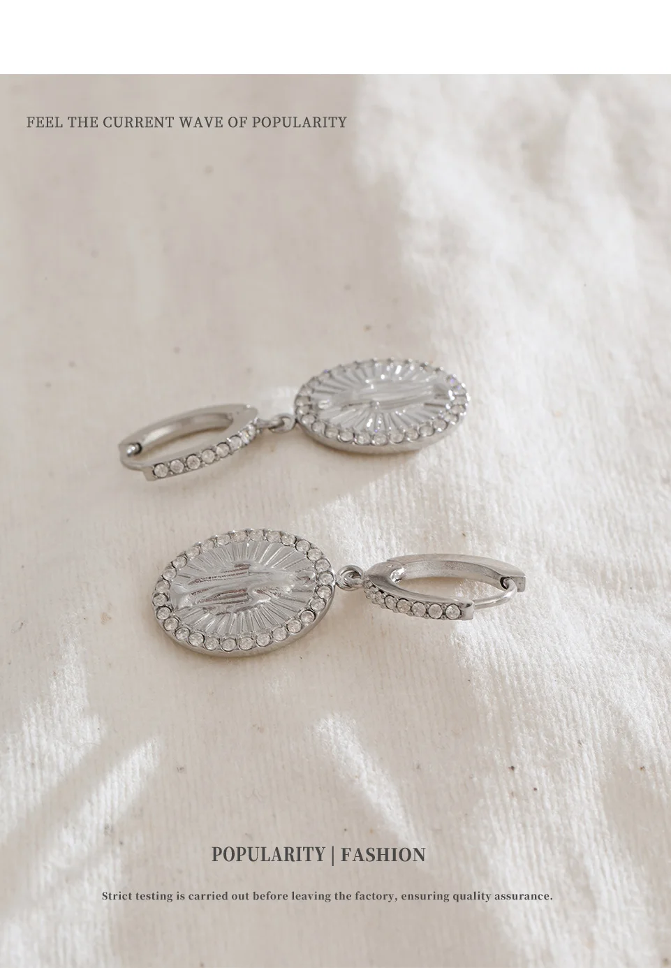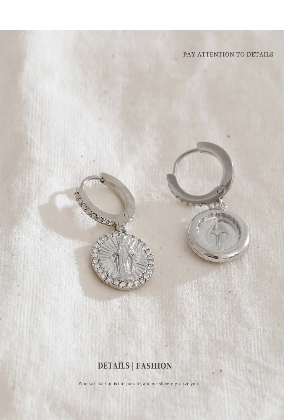 Miraculous Medal Dangle Hoops (Crystal Halo)