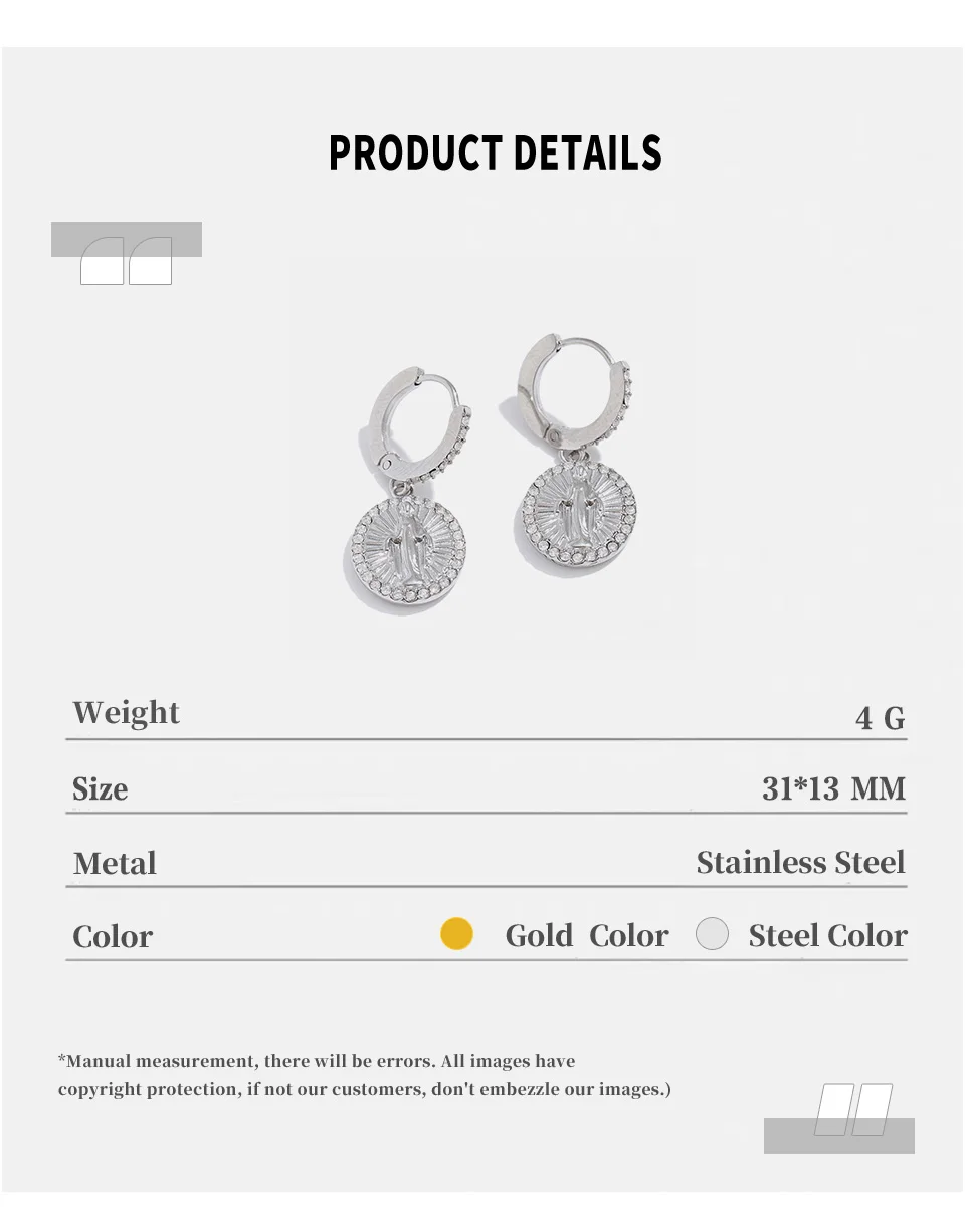 Why Choose This Product: These earrings offer a chic and secure way to wear the protection of the Miraculous Medal. The crystal-studded hoops add a touch of modern glamour to the timeless symbol of faith.