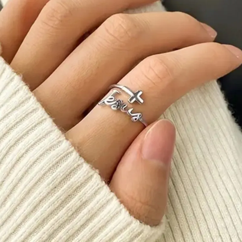 Open-Band "JESUS" & Cross Ring (Inspiration, Strength & Confession)