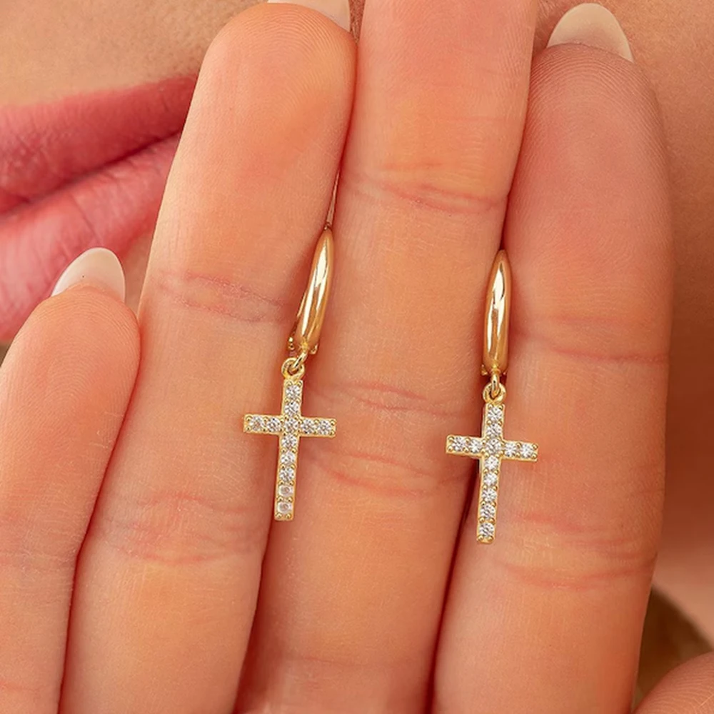 Closure Type: The crosses hang from a comfortable and secure hinged hoop closure (huggie hoop), which is easy to fasten and ensures the earring stays in place.