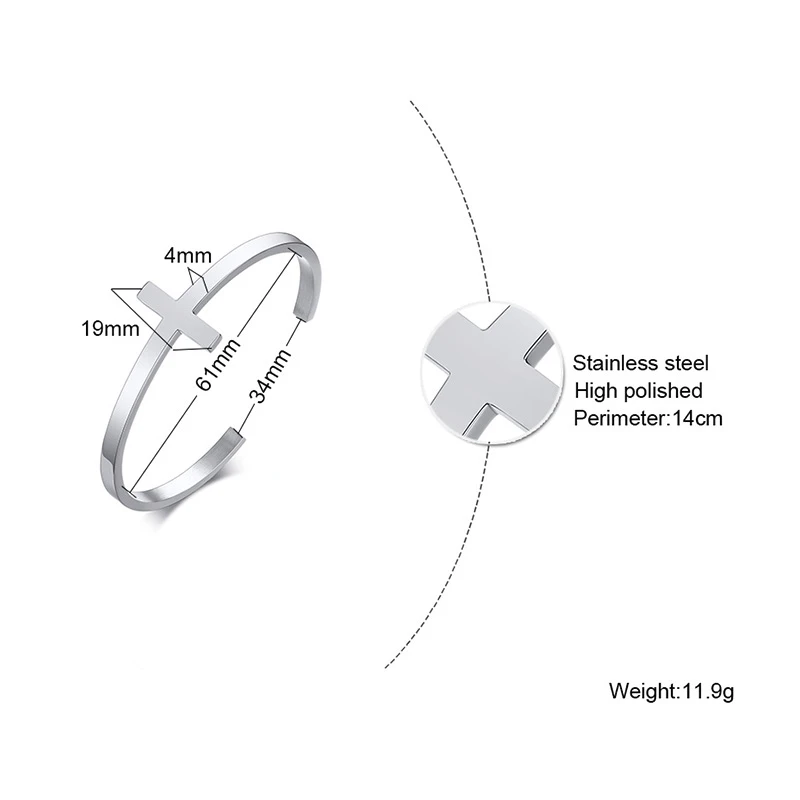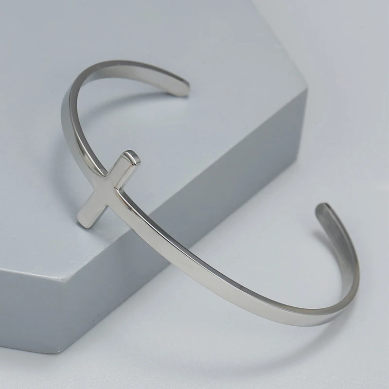 Core Components: The defining feature is the clean, unadorned cross that forms a focal point on the top surface of the cuff. The integrated design ensures the cross is always visible, serving as a powerful, understated symbol of salvation.